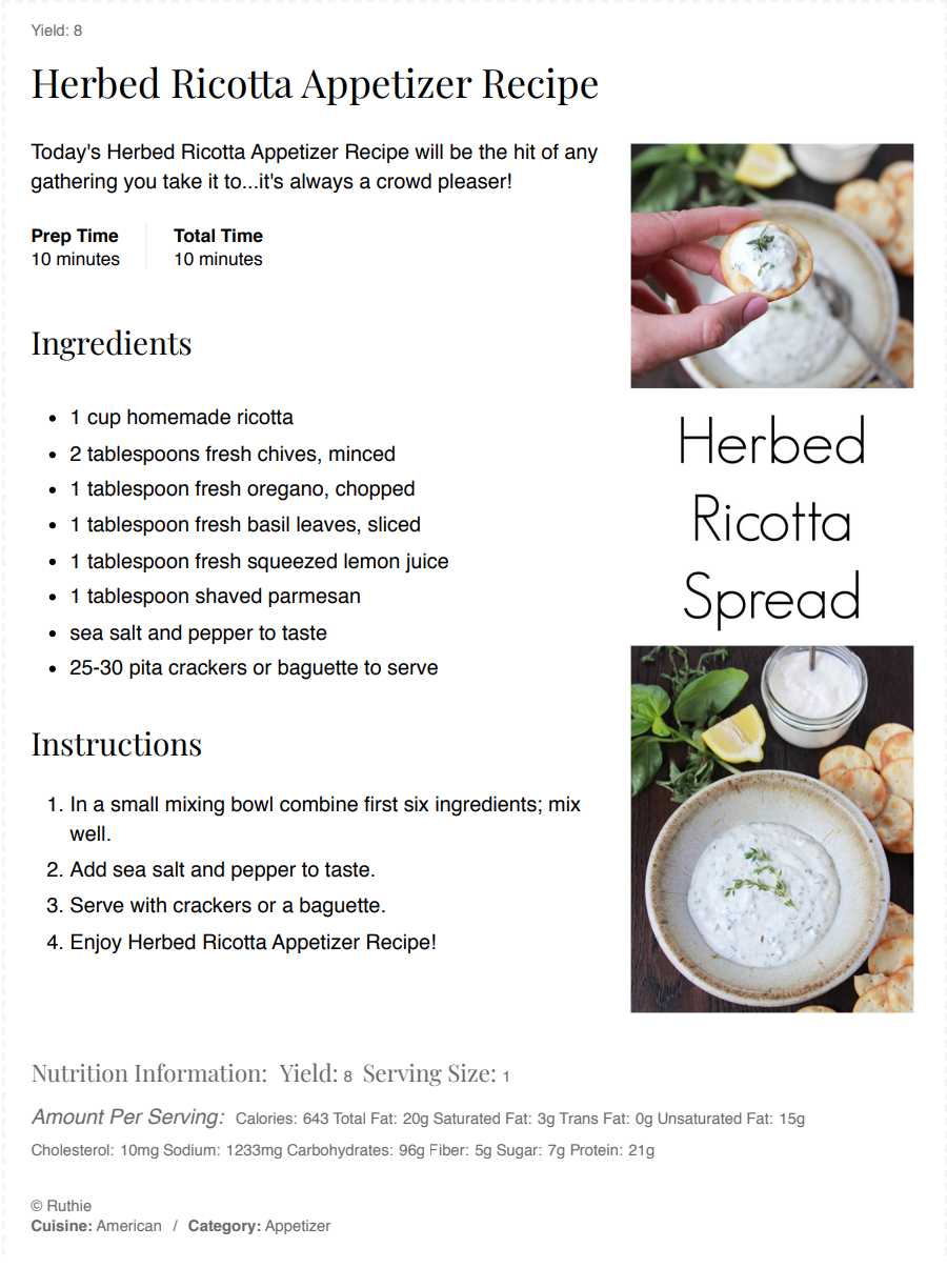 Ingredients in Herbed Ricotta Appetizer Recipe